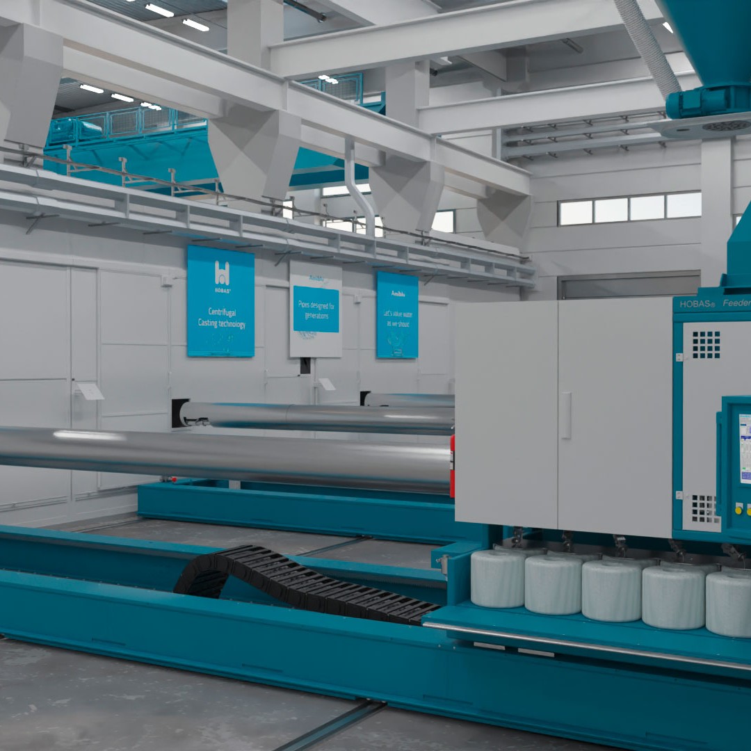 Amiblu – wizualizacja procesu produkcji rur GRP (Hobas & Flowtite)