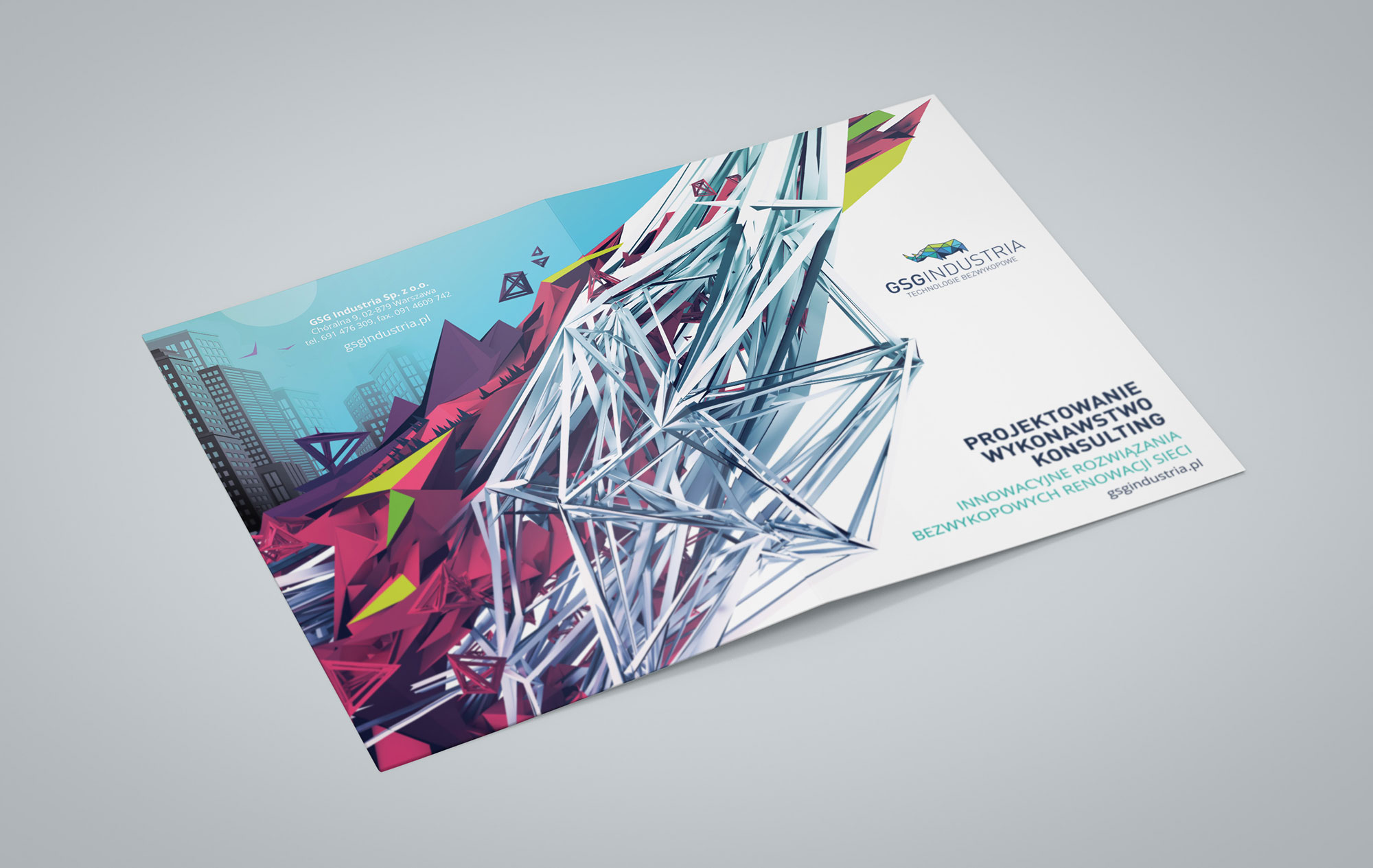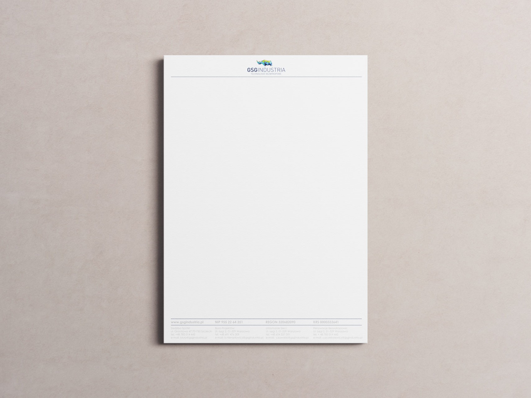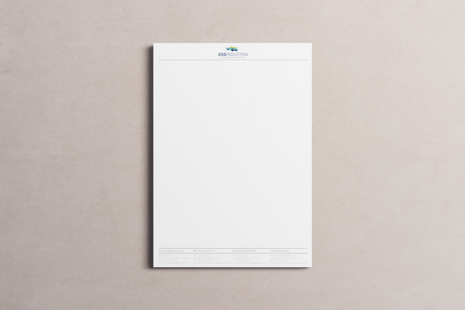 Na potrzeby GSG INDUSTRIA, GSG Serwis i KOZAK zaprojektowaliśmy kompletny system identyfikacji wizualnej, obejmujący: