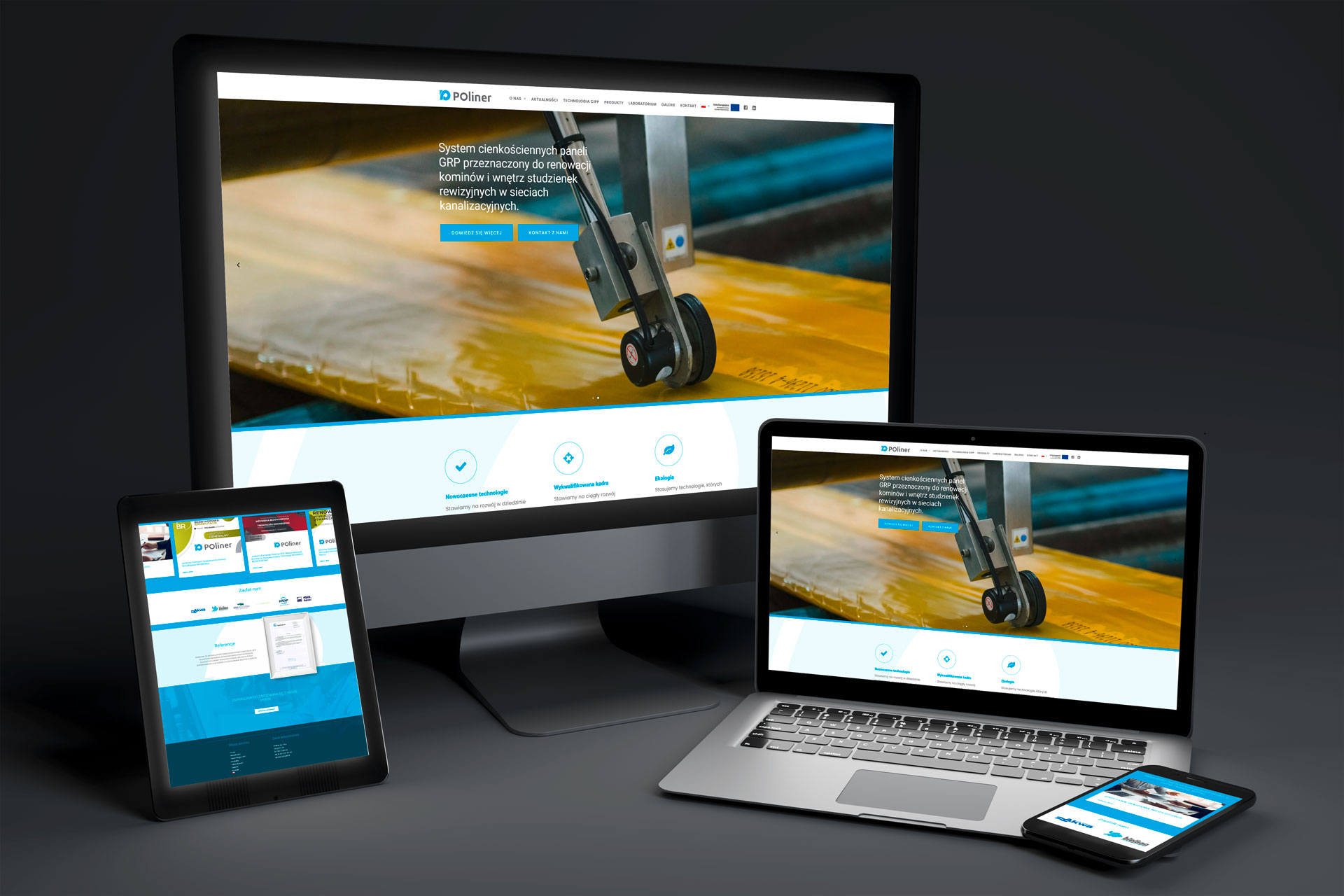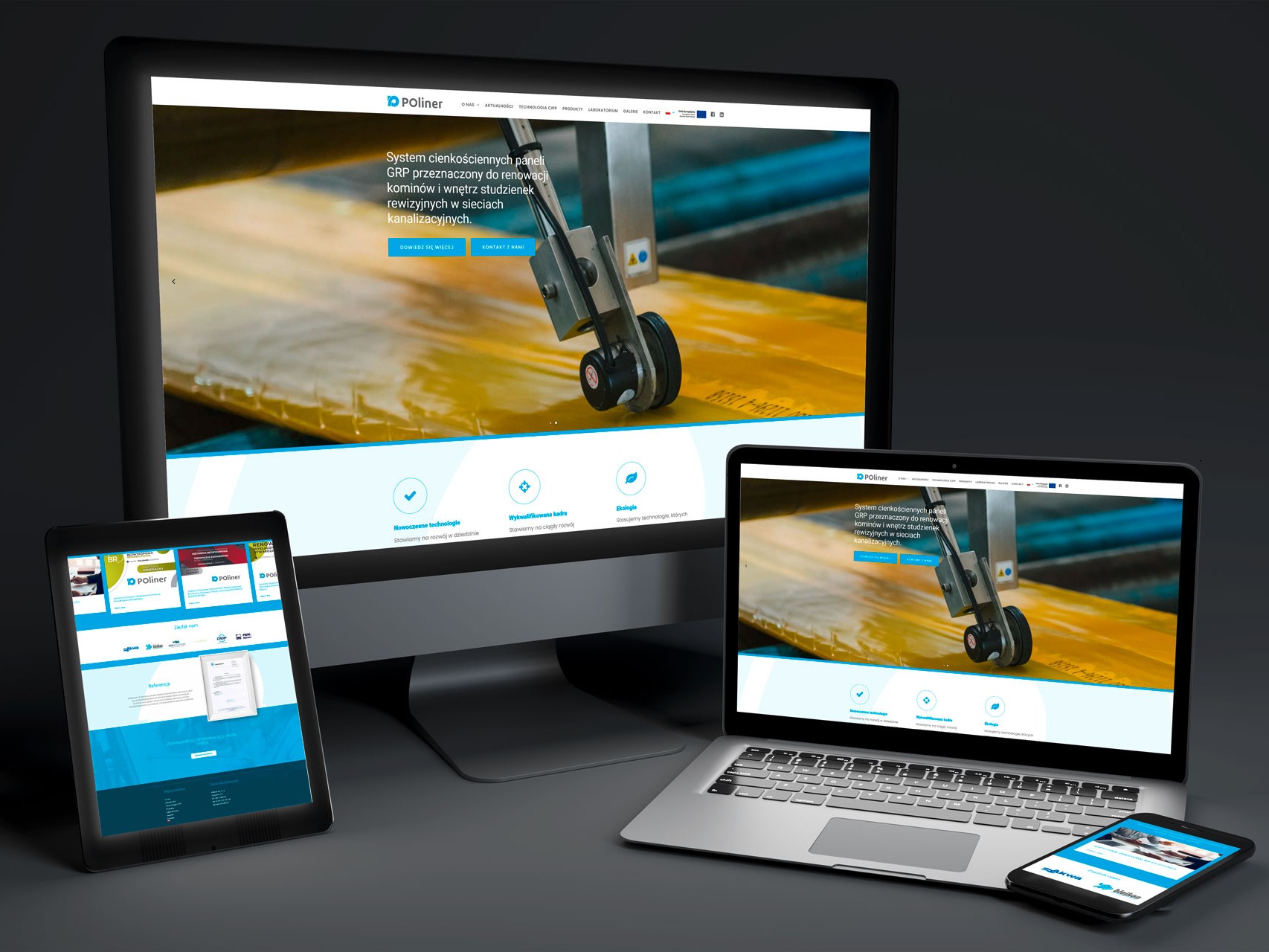 Serwisy zostały zaprojektowane tak, aby przejrzyście prezentować ofertę grupy BLEJKAN oraz jej międzynarodowe kompetencje w zakresie renowacji i technologii infrastrukturalnych.