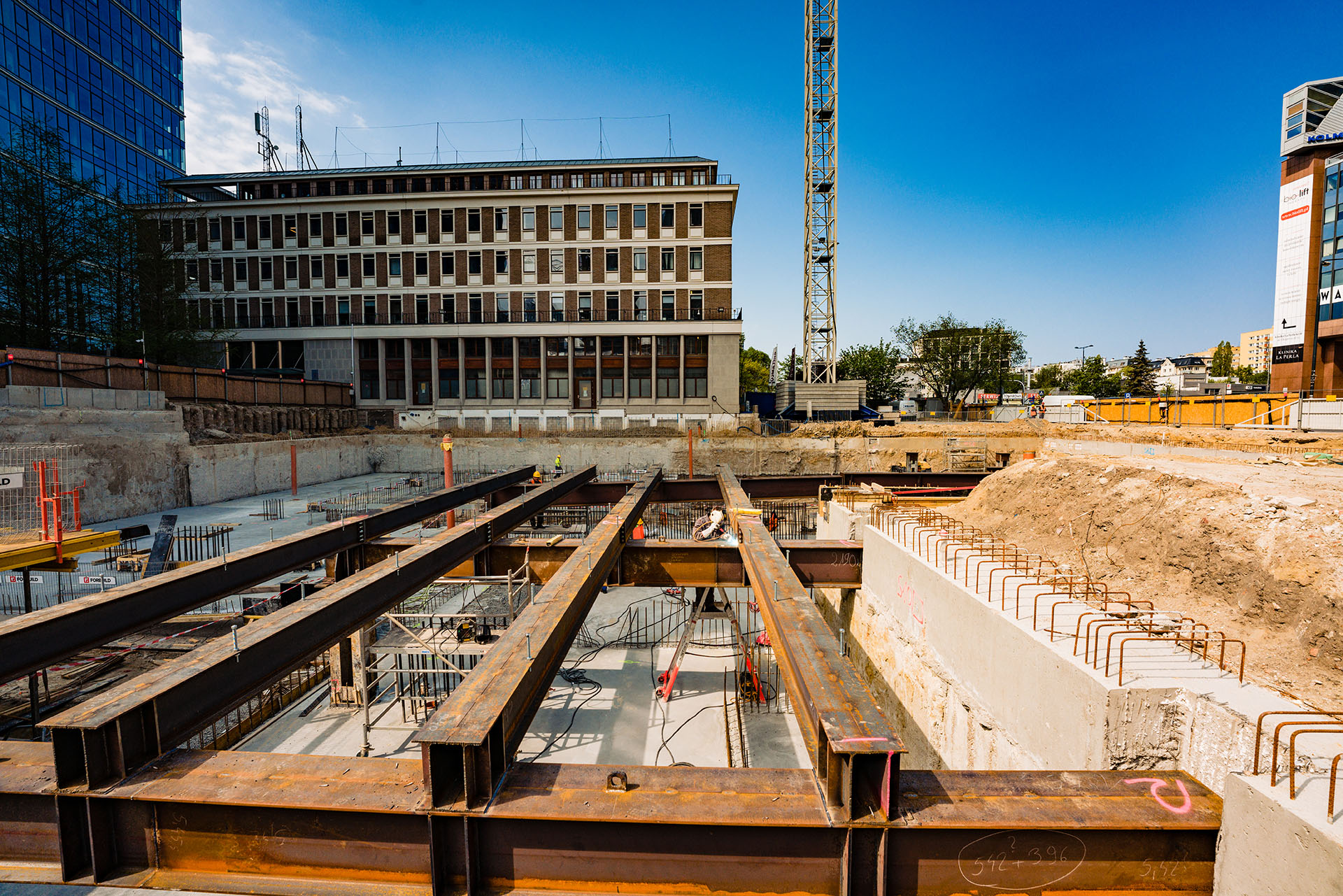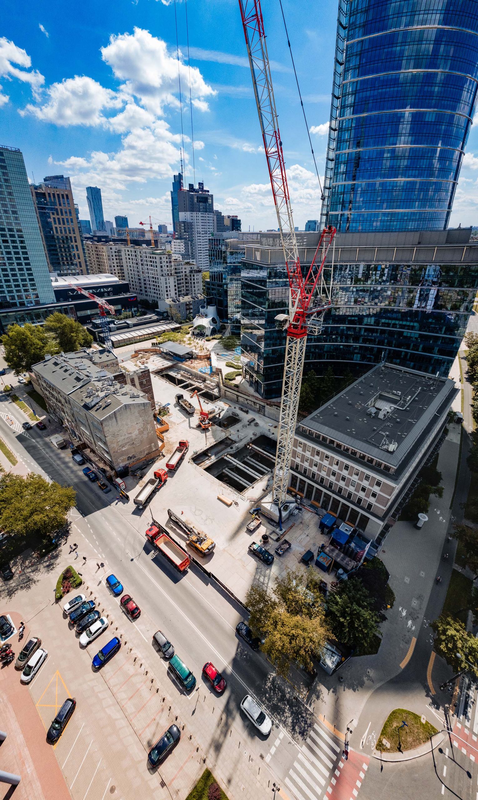 Realizacja czterech sesji foto-wideo na placu budowy, w tym nocnej sesji przedstawiającej transport ciężkiego sprzętu na teren inwestycji. Opracowanie koncepcji oraz produkcja animacji 3D ukazującej procesy geotechniczne: wykonywanie ścian szczelinowych, kolumn jet grouting oraz przygotowanie tymczasowej platformy roboczej.