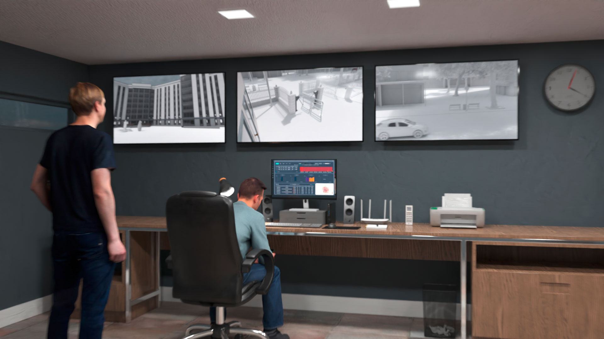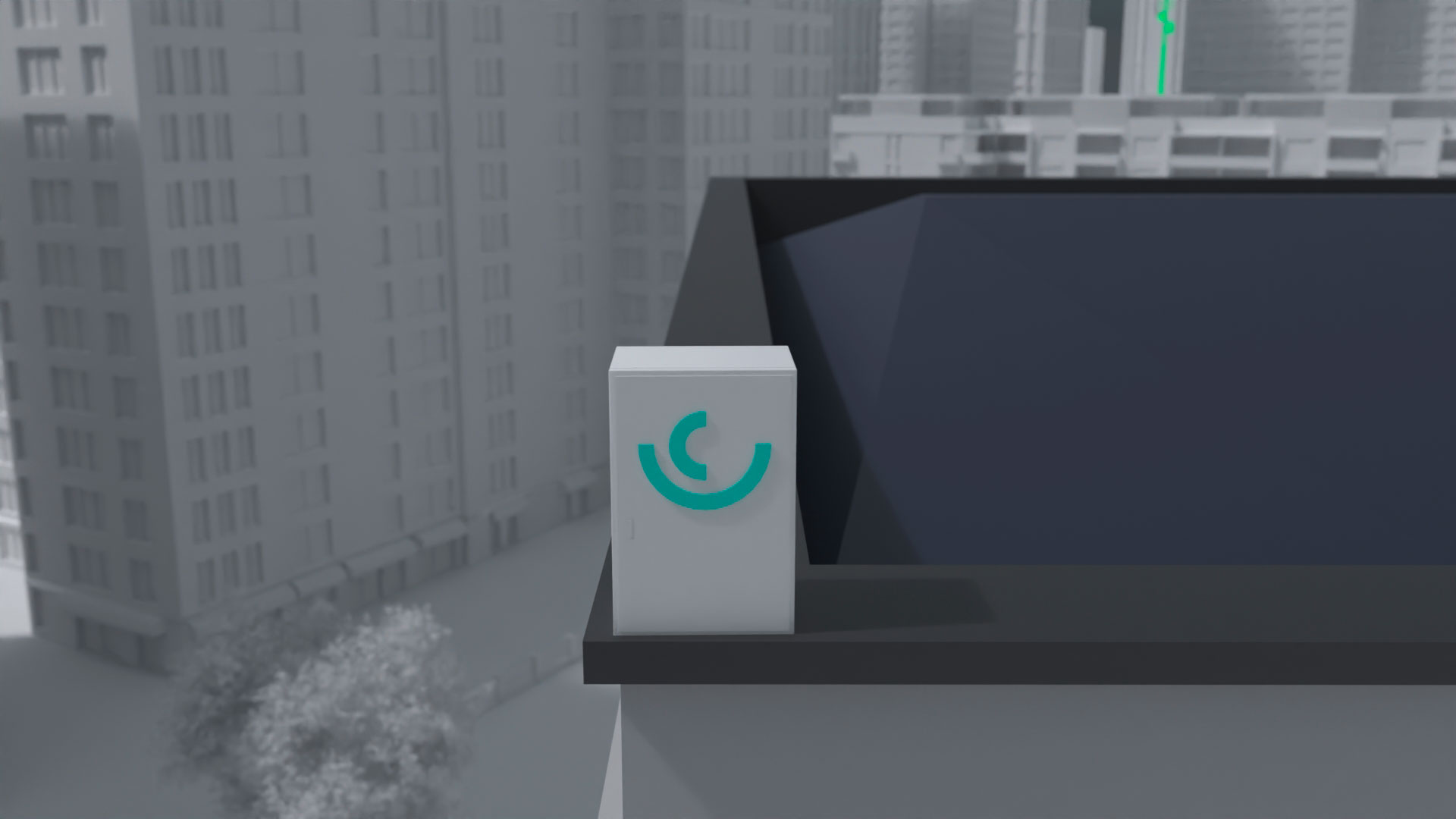 Nowoczesna animacja ukazująca, jak system Vespereye chroni sieci GSM w instytucjach i korporacjach. Minimalistyczna, czarno-biała forma z wyróżnionymi elementami systemu podkreśla jego kluczowe funkcje i skuteczność działania.