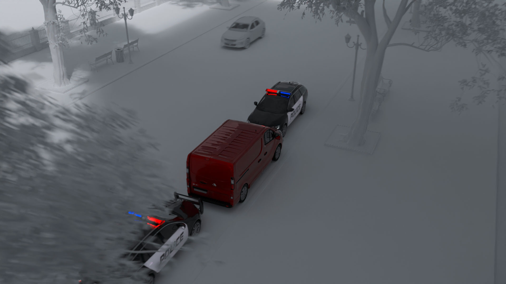 Opracowanie koncepcji oraz stworzenie pełnego scenariusza wizualnego w stylistyce czarno-białej z kolorowymi akcentami systemu.